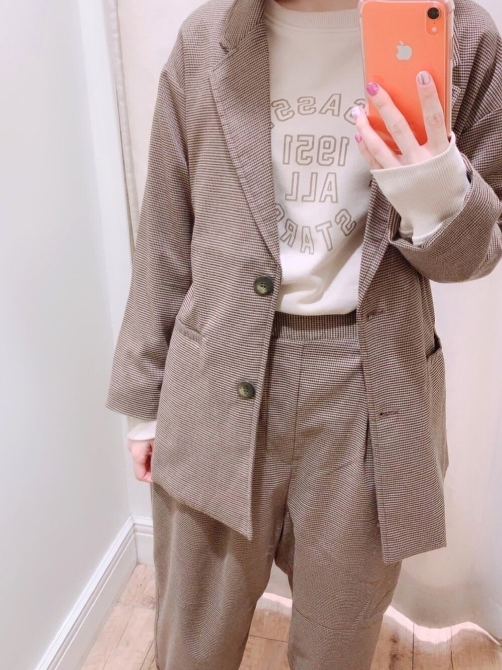セットアップコーデ 。 チェックが大人なセットアップ☀︎ カラーは 〇ブラウン 〇グレー の2色です。 少しゆったりサイズで これから重ね着にも対応出来そうです☺︎ 156cmの私だと少しゆるっと、 でもパンツは長すぎずって感じです!〟 今回はブラウンに同系色のベージュで ゆるっとスタイルです* 色物で切り替えても、モノトーンでしめても◎ セットアップは別々に使えて コーデが広がってワンセットあると 楽しみが増えます( ¨̮ )💭 ------------------ 福岡 / SM2 店舗スタッフ ご覧頂きありがとうございます フォロー&コメントも お気軽にお待ちしております☺︎ ------------------