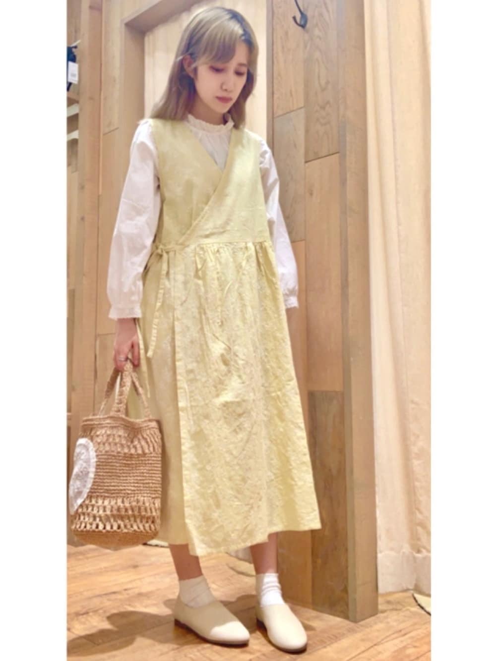 anoのワンピース「レモン柄刺繍カシュクールワンピース」を使ったコーディネート