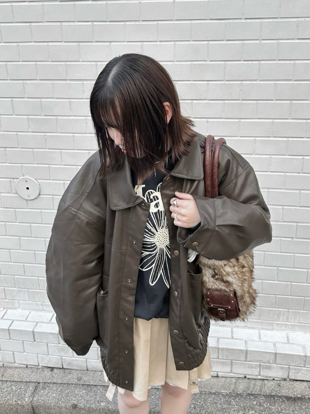 色味が最高に可愛すぎる midealのレザージャケット使ったカフェコーデ◝☆ 今年もレザー大活躍😮💨🤍