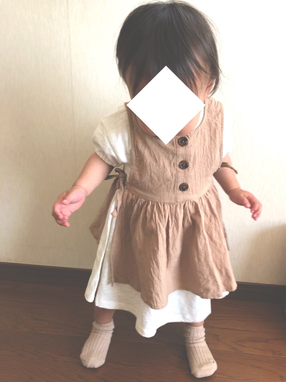 今日は安定のベージュコーデです🧸❤️ バースデイのエプロンワンピース すっごくかわいい☺️☺️ バースデイさん 安いから大量買いしてしまう💦 1歳2ヶ月