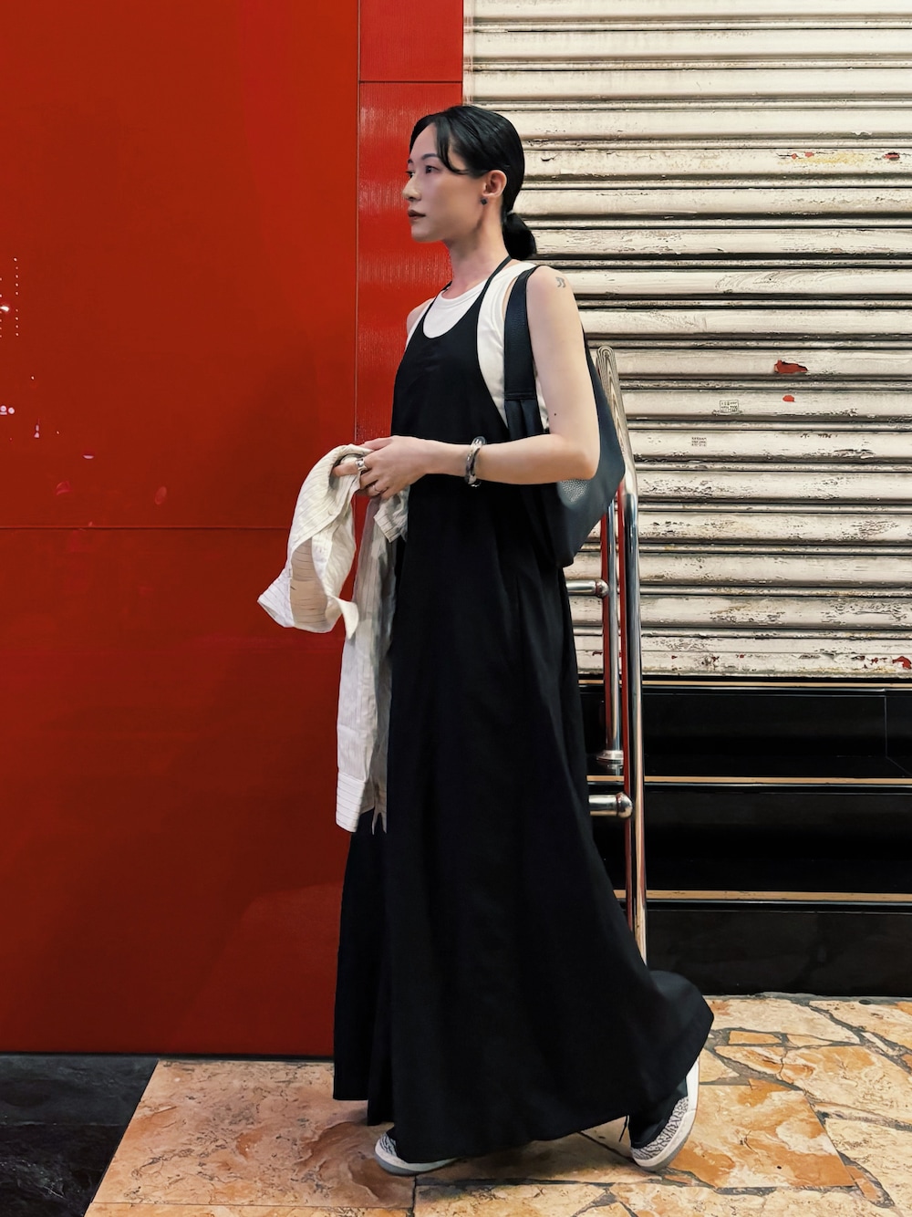 さいのワンピース「クラッシュナイロンホルターキャミワンピース」を使ったコーディネート