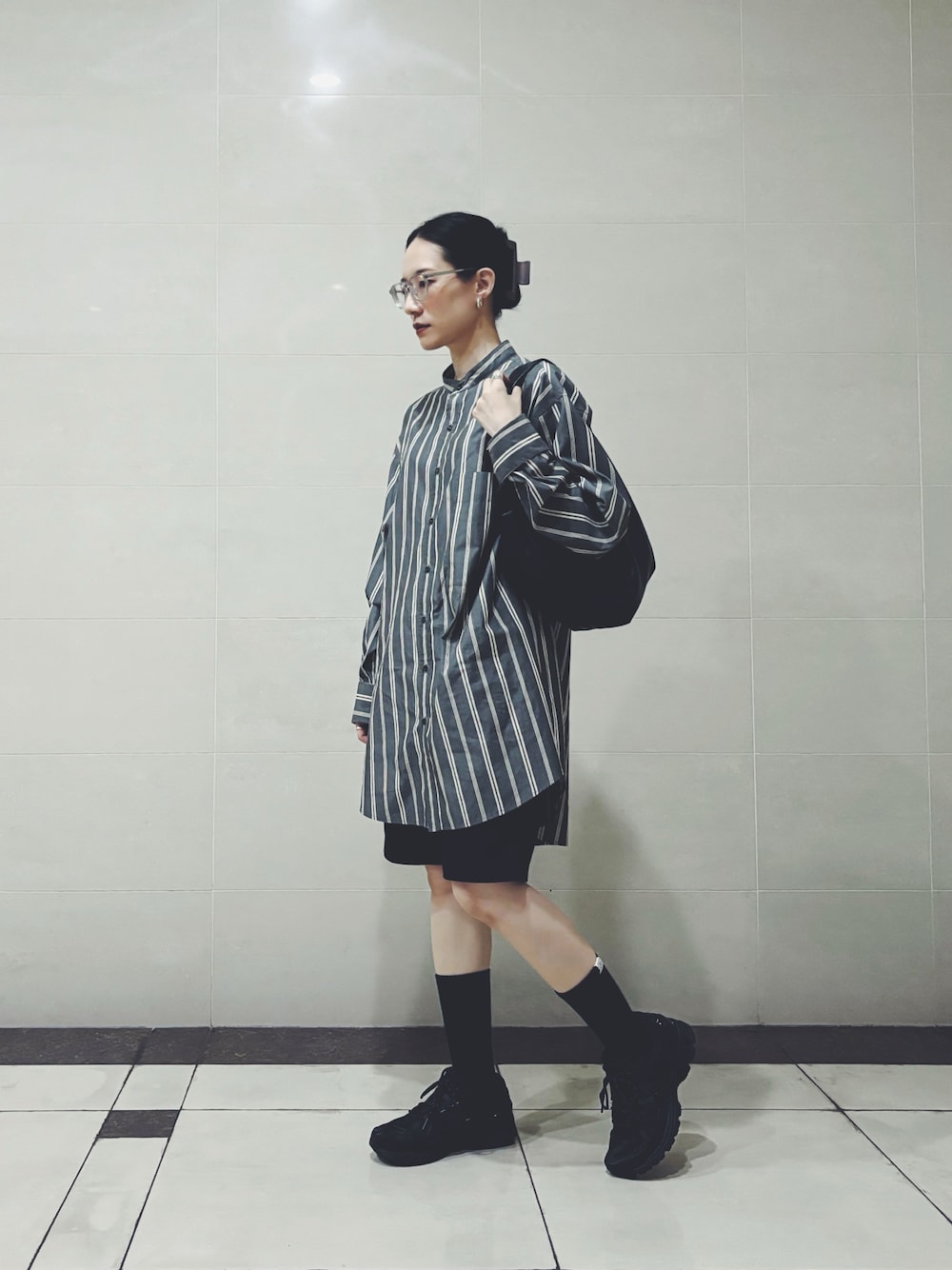 オーバーサイズのシャツとショートパンツで、ちょっとかっこいいスタイルにしたかったです。