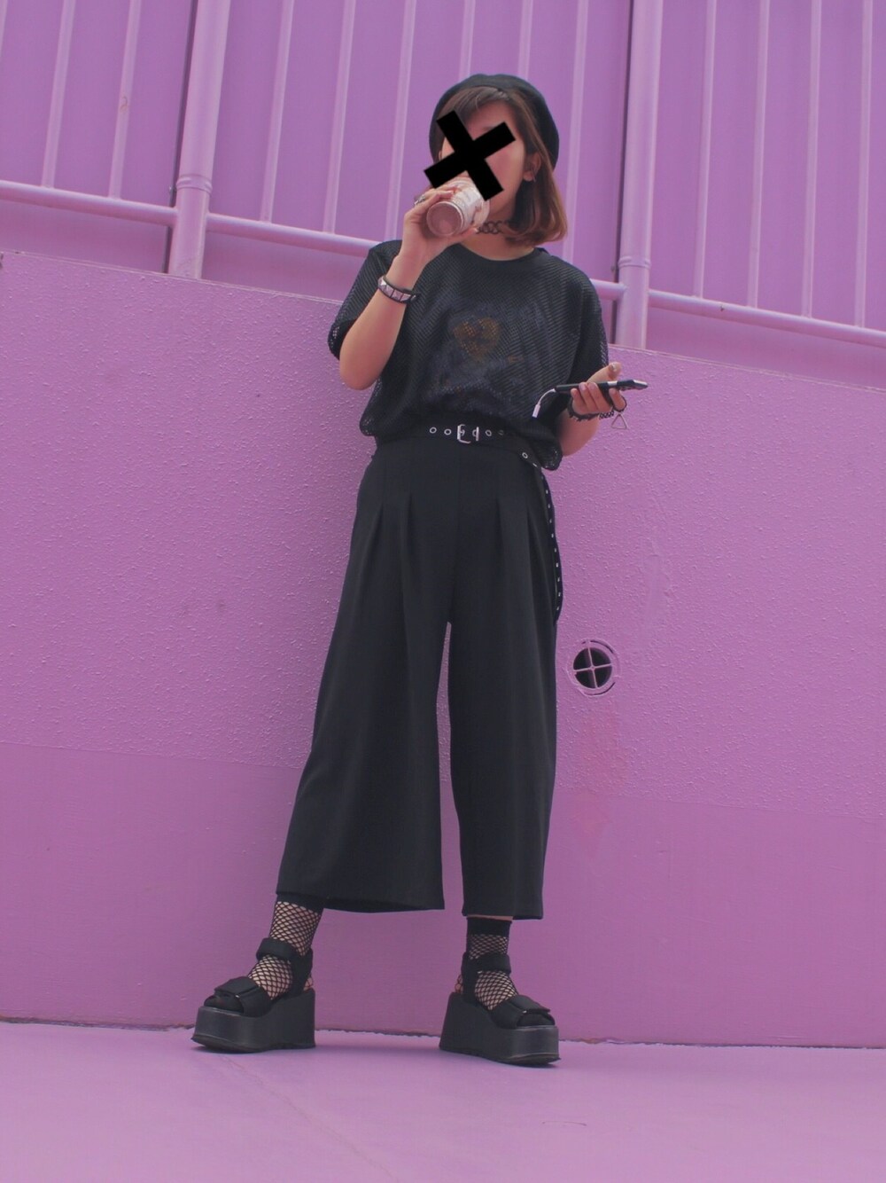 真っ黒コーデでユニバ🖤 GUのメタリカTシャツの上からあみあみのTシャツを重ね着🖤
