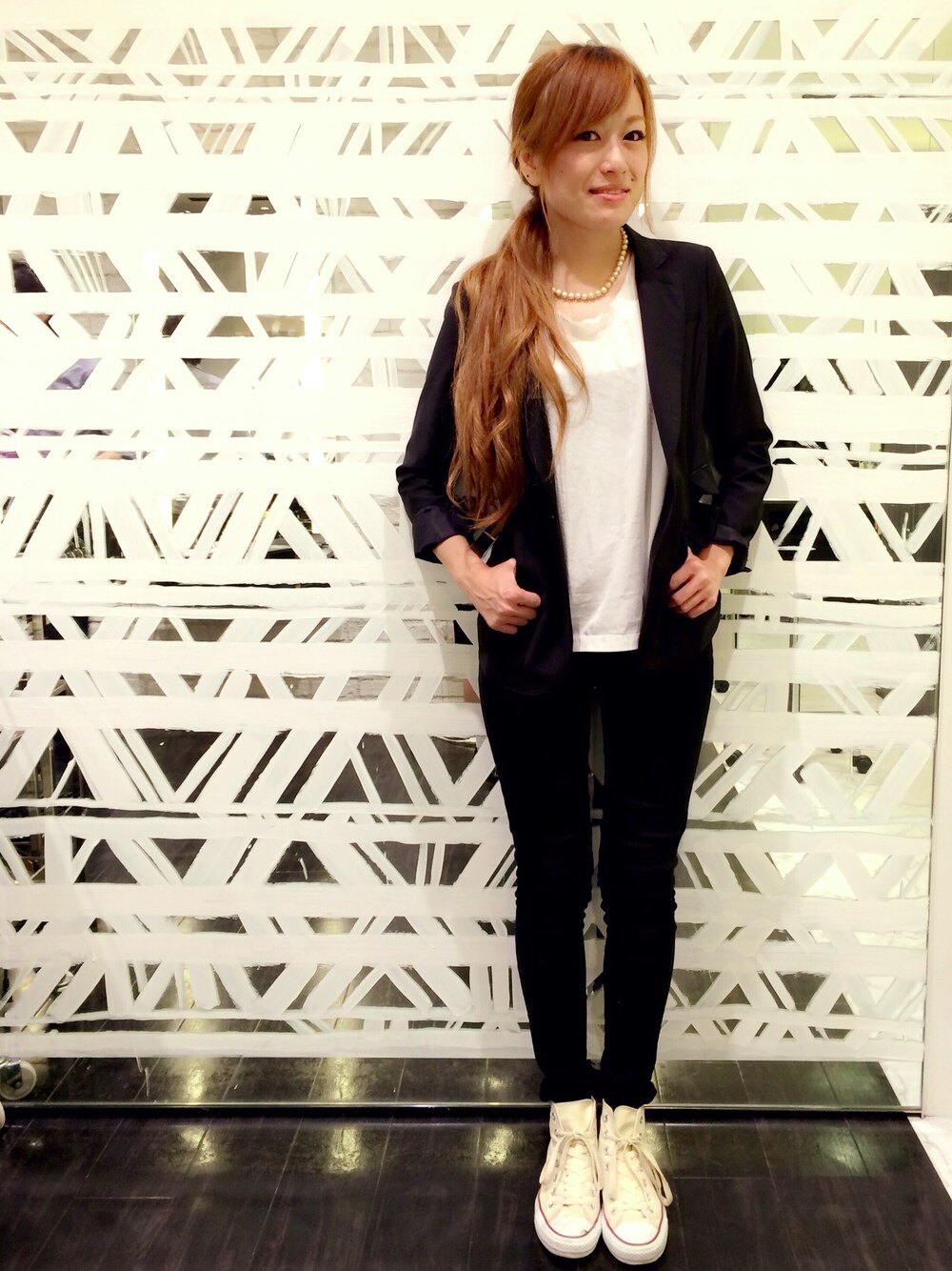 ブラック×ホワイトのシンプルコーデにコンバースのハイカットでカジュアルMix!!
