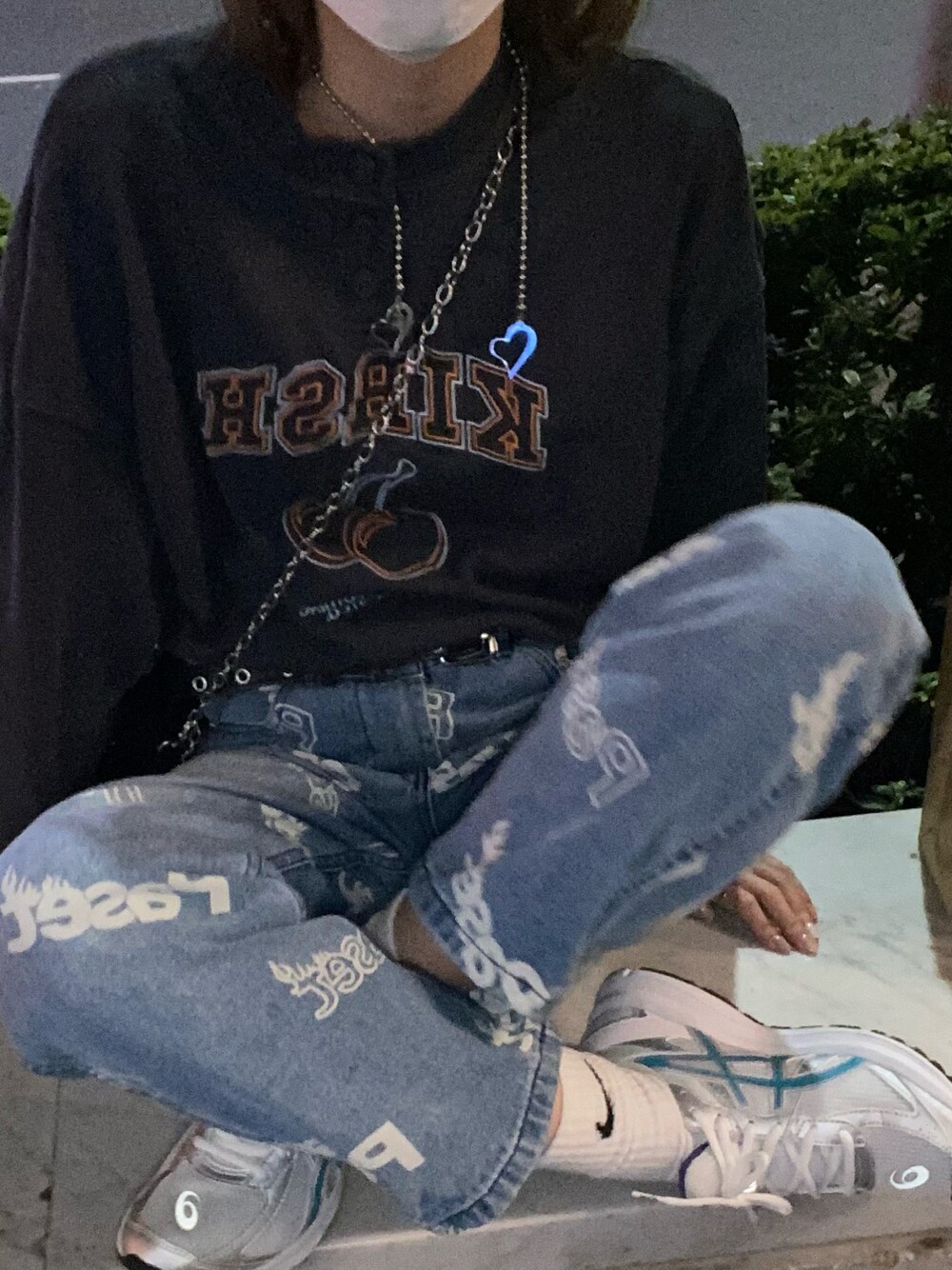 しずくのスウェット「A'GEM/9 × .kom『KIRSH/キルシー』ARCH CHERRY SWEATSHIRT/アーチロゴ チェリー スウェットシャツトレーナー」を使ったコーディネート