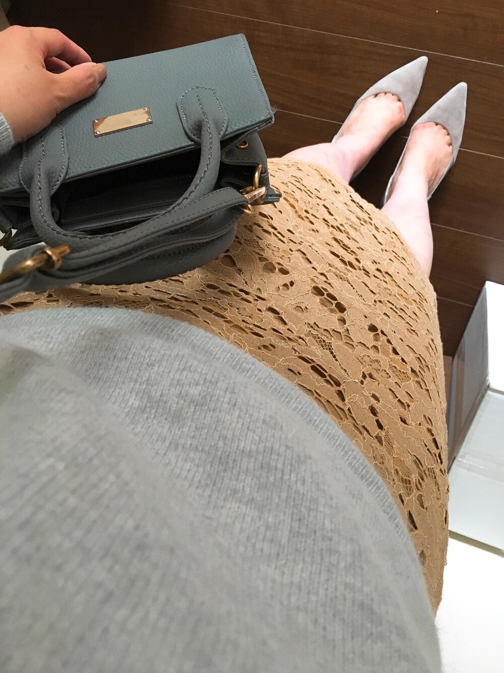 グレー×ベージュ フェレットニット☺️ 小物もグレーで👌