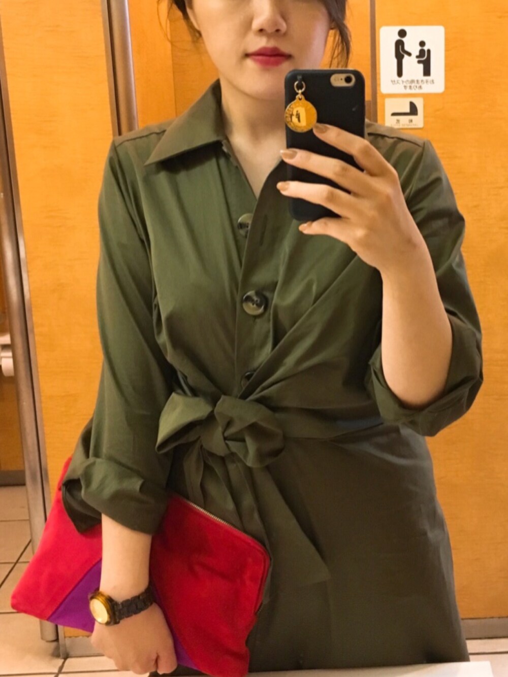 カーキ×レッド シャツワンピース👗