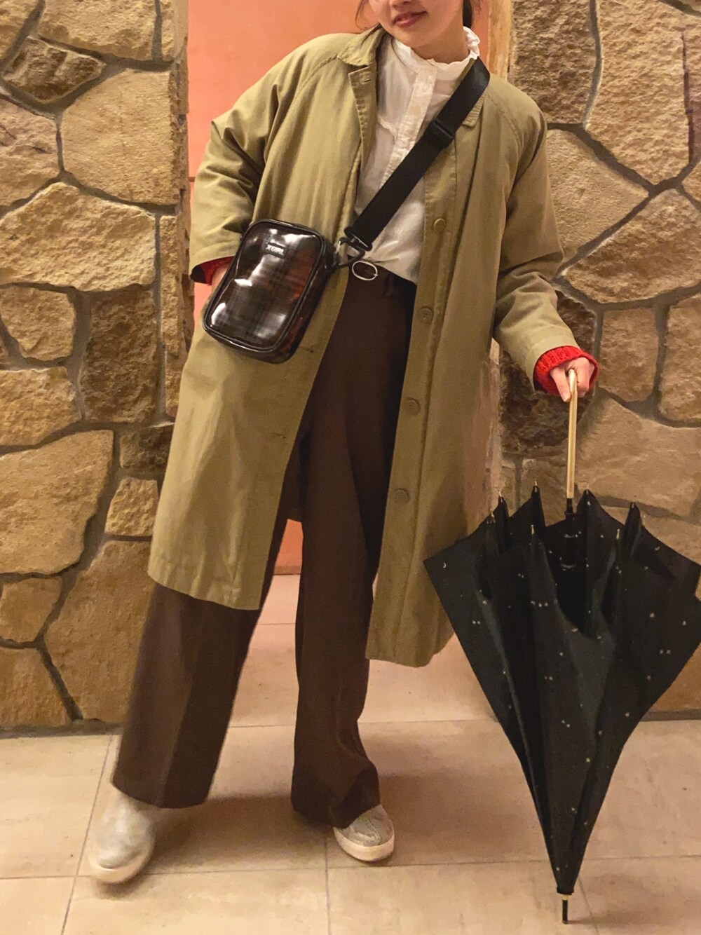 遡るコーディネート集(2 探偵チックなコーデ👗✨ 中に赤ニットのカーディガン着てるから、腕のとこから赤いの見えててそれも可愛い🤍 X-girlのバッグSALEで安く買えたの🏜