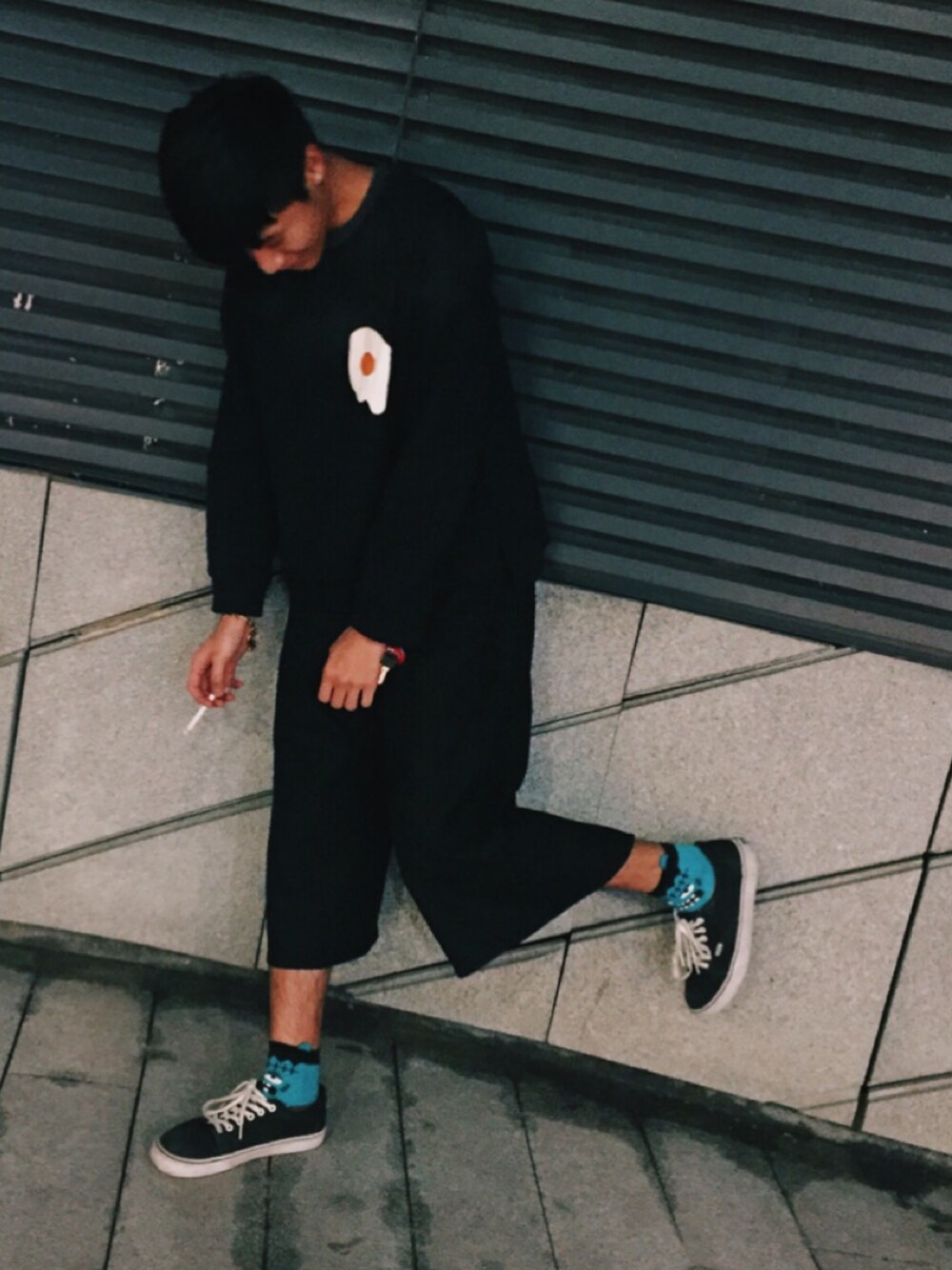 All black style with cute socks!!!