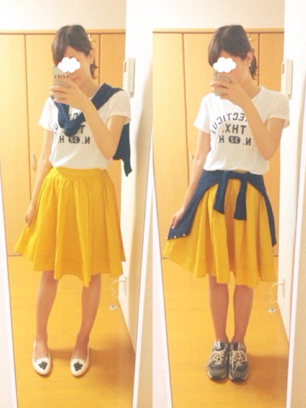 ❤︎ ご無沙汰です(;_;)笑 めっちゃ久々の投稿です…! またまたイエローなコーデ! イエローはなんかハッピーで元気なイメージがあって私の大好きなカラー☻☻!! Aラインでちょっとキレイ目なスカートですが、 Tシャツと合わせてカジュアルダウン! 私はスニーカー合わせたコーデの方がお気に入りです♪ 昨日は花火大会行きました♪ 関東花火大会デビューです!(:3っ)∋笑 なかなか更新できなくてすいません…>_<… マイペースですが ぼちぼちがんばって更新します!☻