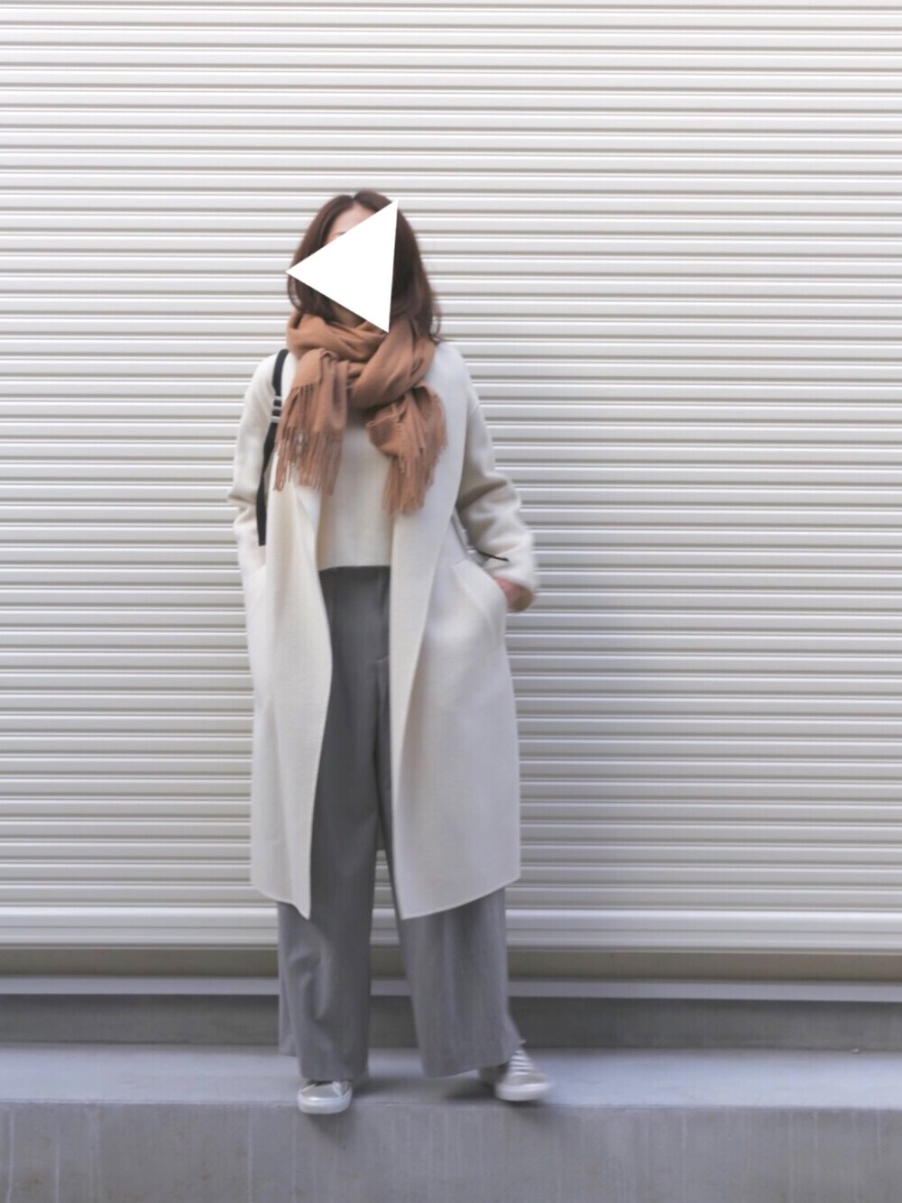 マフラー...Edition コート...TOMORROWRAND ニットTOMORROWRAND パンツ...TOMORROWRAND くつ...Common Projects
