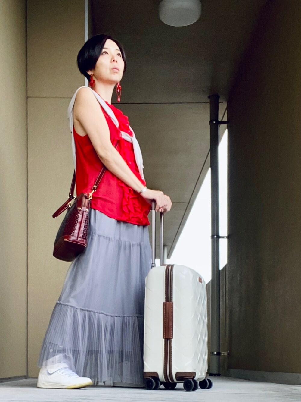 今日は西九州新幹線開業のイベントで、パステルアート出店。 おめでとうの意味を込めて、ドレスコードは白か赤。白より赤が着たい!でも似合わないので1枚も持っておらず…ということで買いましたよね、メルカリで笑 前立てにフリルがふんだんに付いたシアーブラウスで、すごく可愛い♡ 明日も同イベントだから、コレ着てくよー。