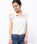 chikakoのシャツ/ブラウス「【Discoat】フロッキードット肩フリルノースリブラウス」を使ったコーディネート
