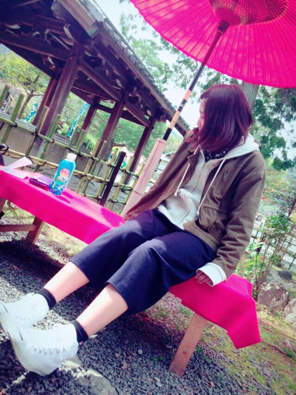 京都ぶらり旅〜🍵 暖かくなってきたので少し暑かったです😅 カーキのコートにパーカーのフードを出したのがポイントです!