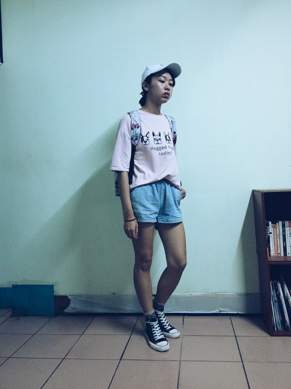 單寧褲x棉T 基本搭配棒球帽 後背包 喜歡休閒