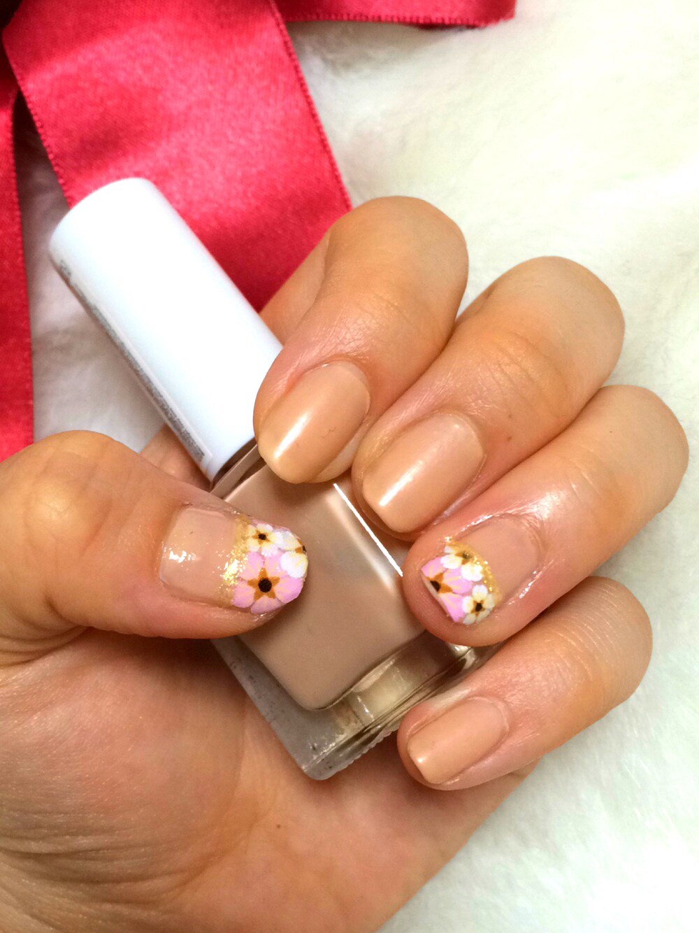マットベージュ✖️花柄フレンチ がんばって、この程度(_ _)