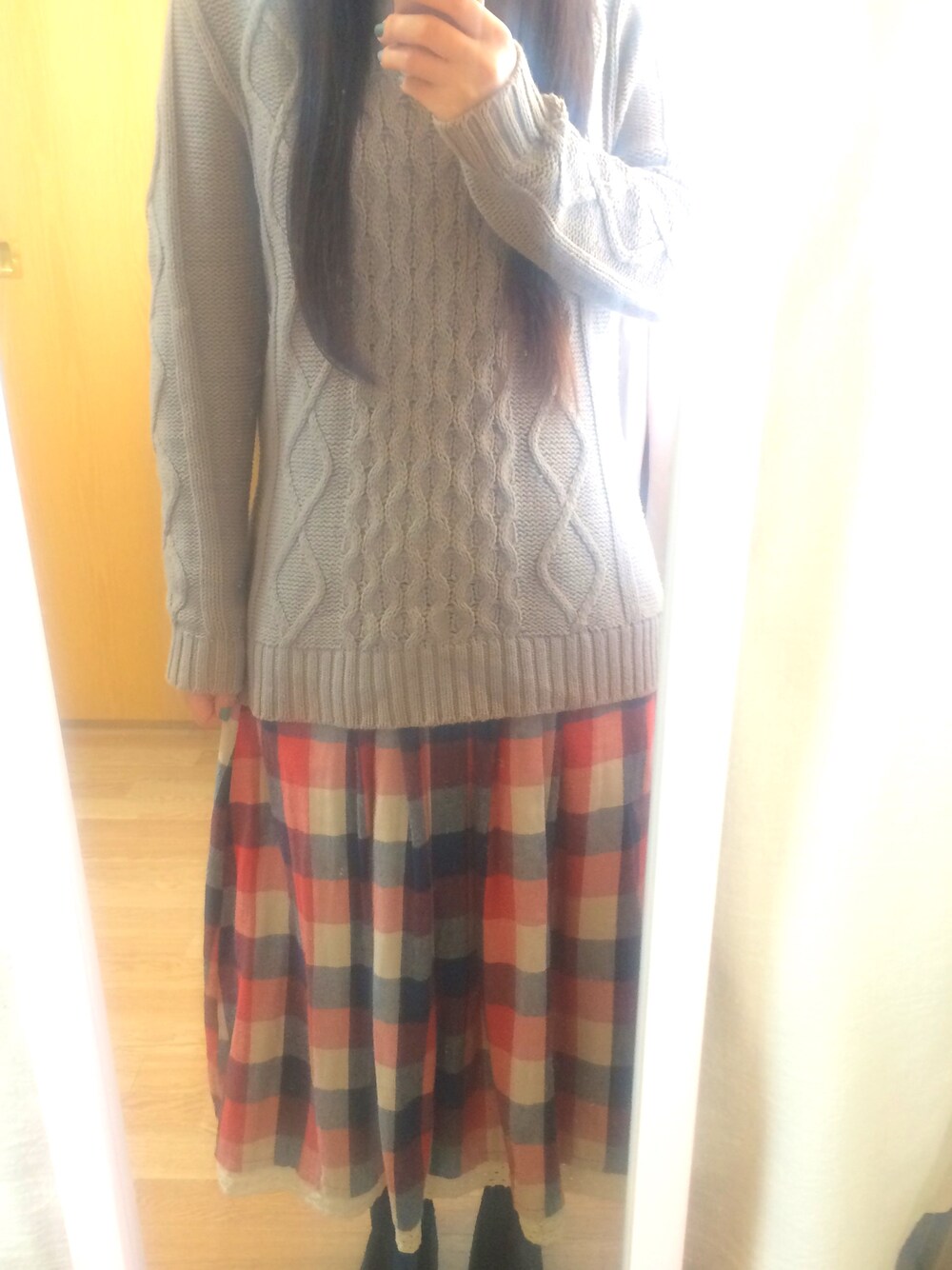 ねむいよ…コーデ 初めてメンズのニットを着てみた… くすんだ色味に一目惚れ。 ちょっと気分が良い…ねむいけど。 髪伸びすぎました。