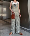 🅿️onioのサロペット/オーバーオール「【妊婦さんや低身長ぽっちゃりさんサイズあり】チェック切り替えキャミサロペ」を使ったコーディネート