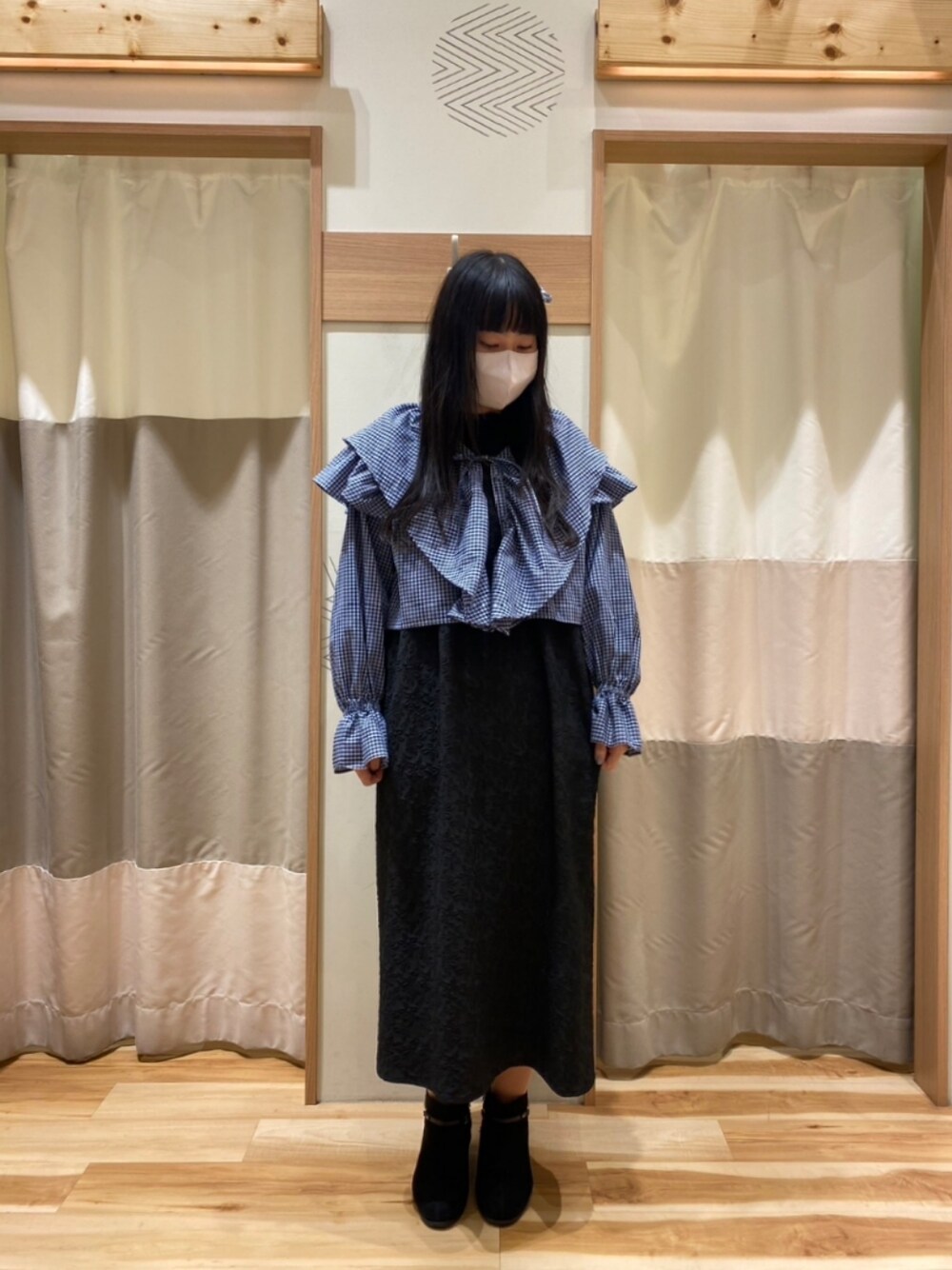 黒の大人っぽさに ネイビーのブラウスで春らしさをプラスしてみました🎀 ネイビー×黒  暗くなりすぎずおすすめです*