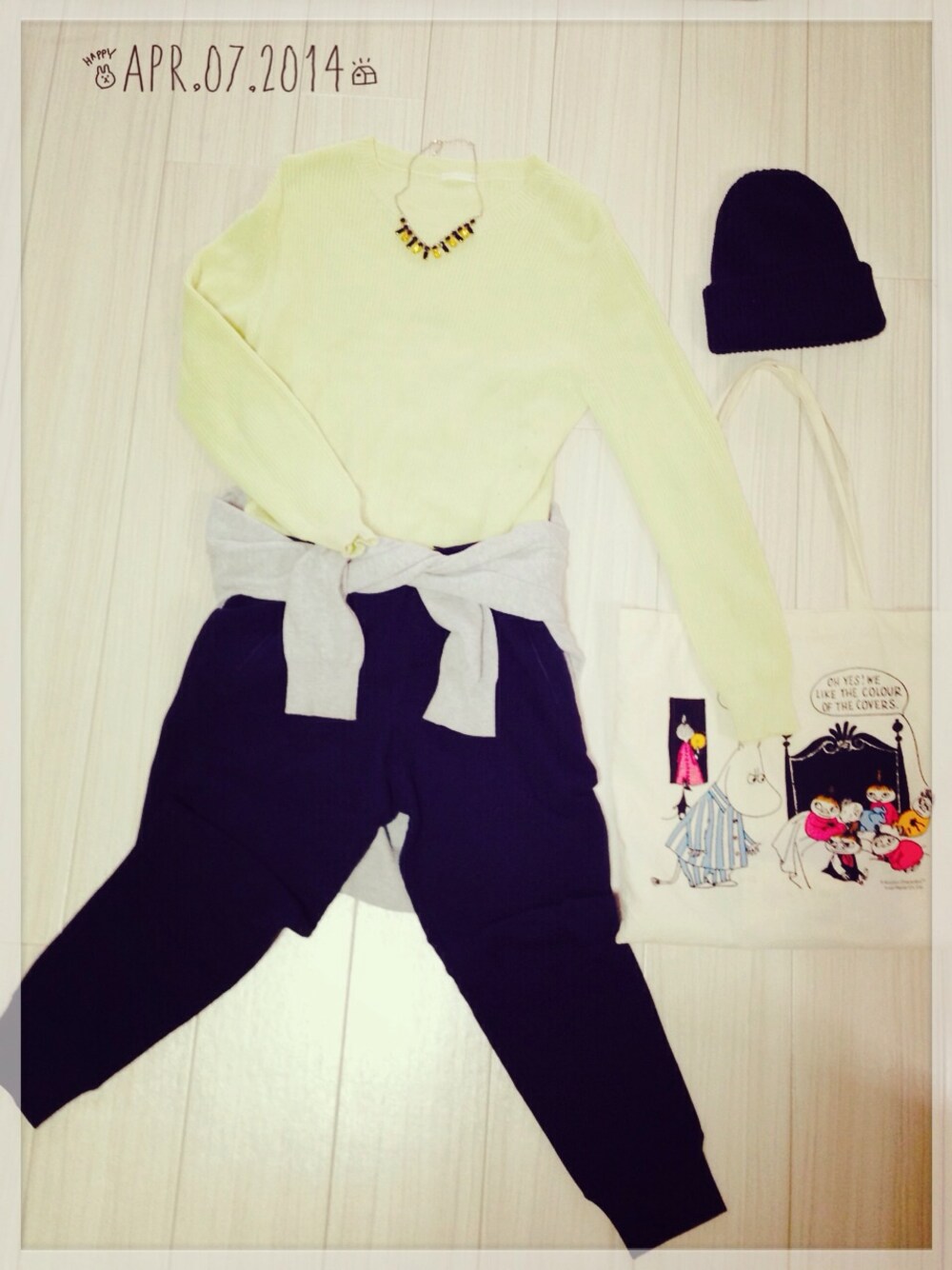 ニット GU (1000) カーディガン GU(1300) ボトムス UNIQLO (1300) ニット帽 Right-on (500) バッグ ムーミンショップ (600) アクセ ? (2000) ***** TOTAL 6700円