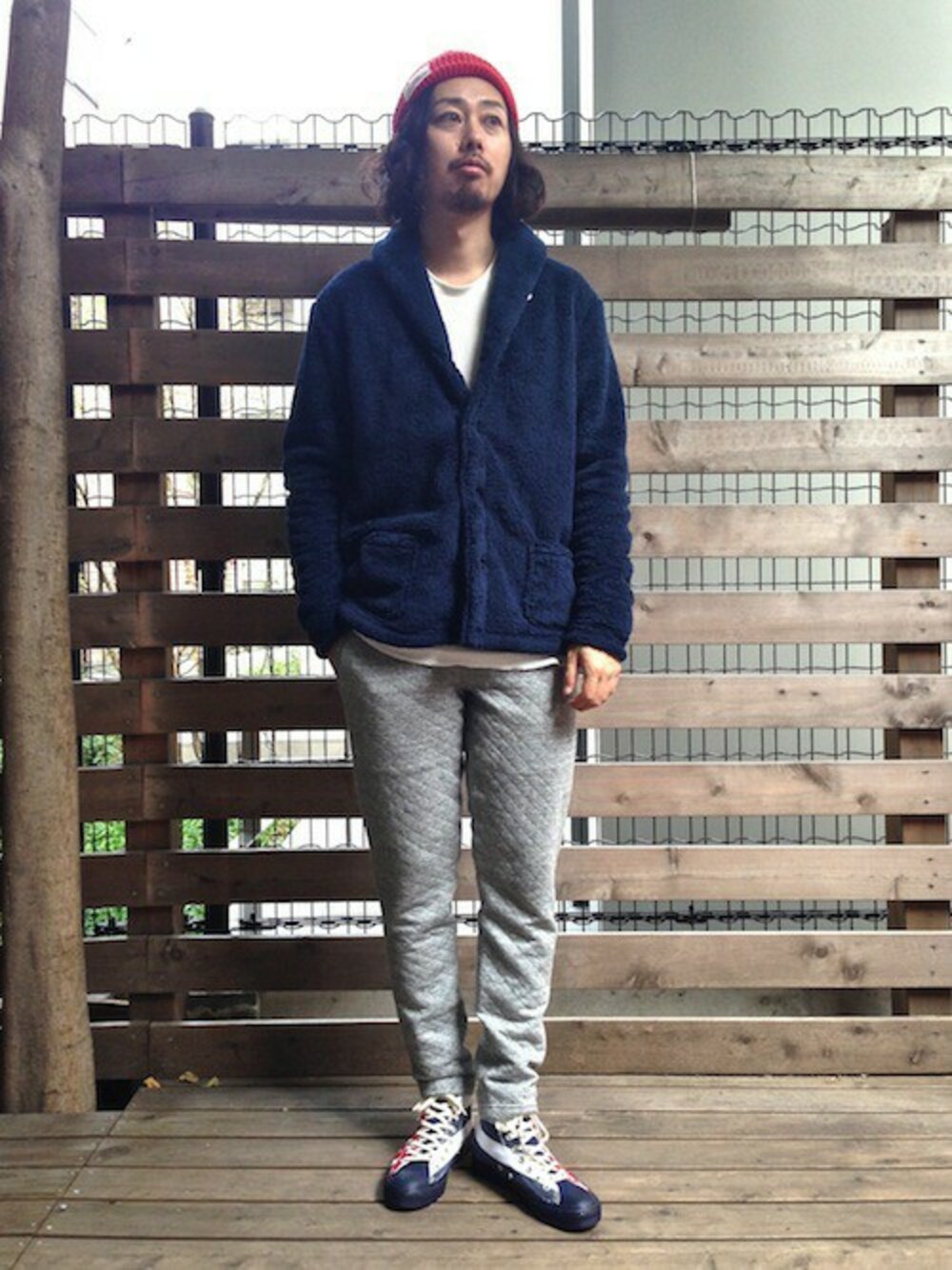 抜群の素材感のカーディガンをメインに。軽くて保温性も◎ ボトムスはキルティング素材のイージーパンツ。タイトテーパードシルエットが合わせる洋服を選びません。 程よいぬけ具合のC.E.L.STORE定番コーディネートです。