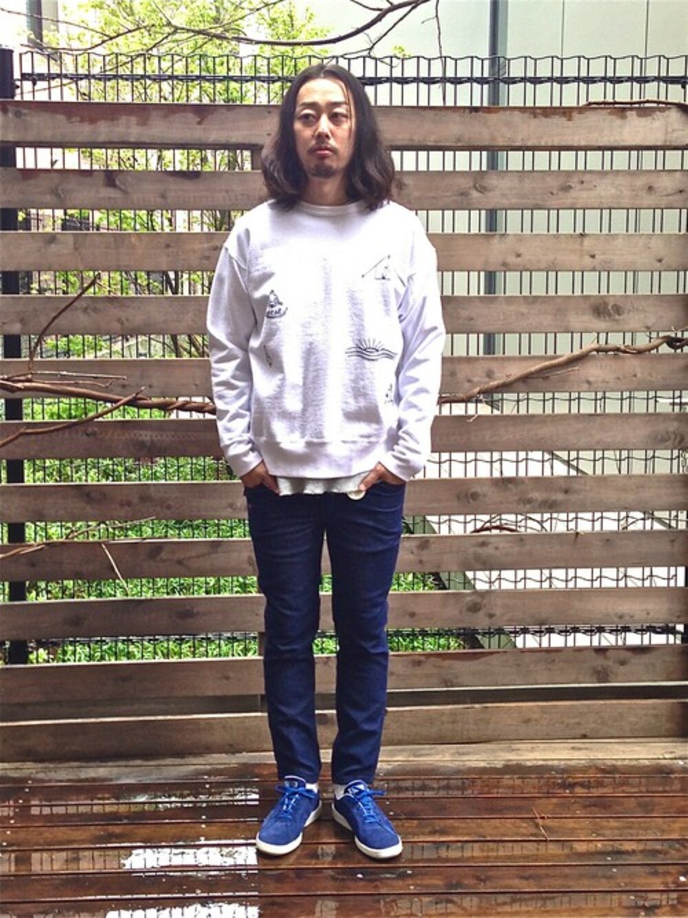 kitazawaのスウェット「SALTWATER COWBOY/ソルトウォーターカウボーイ DOODLE LOOSE SWEAT」を使ったコーディネート