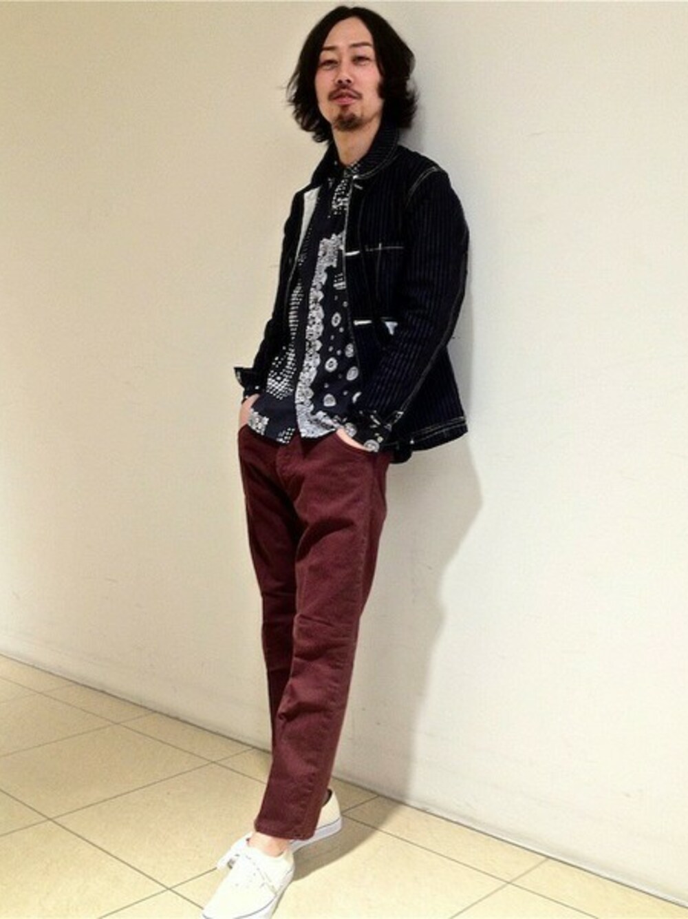 SUNNY SPORTSのバンダナシャツをメインに男らしいワインカラーのTOWNCRAFT 7/8チノパンツと合わせて☆ 足元は軽快にVANSで決まりです☆