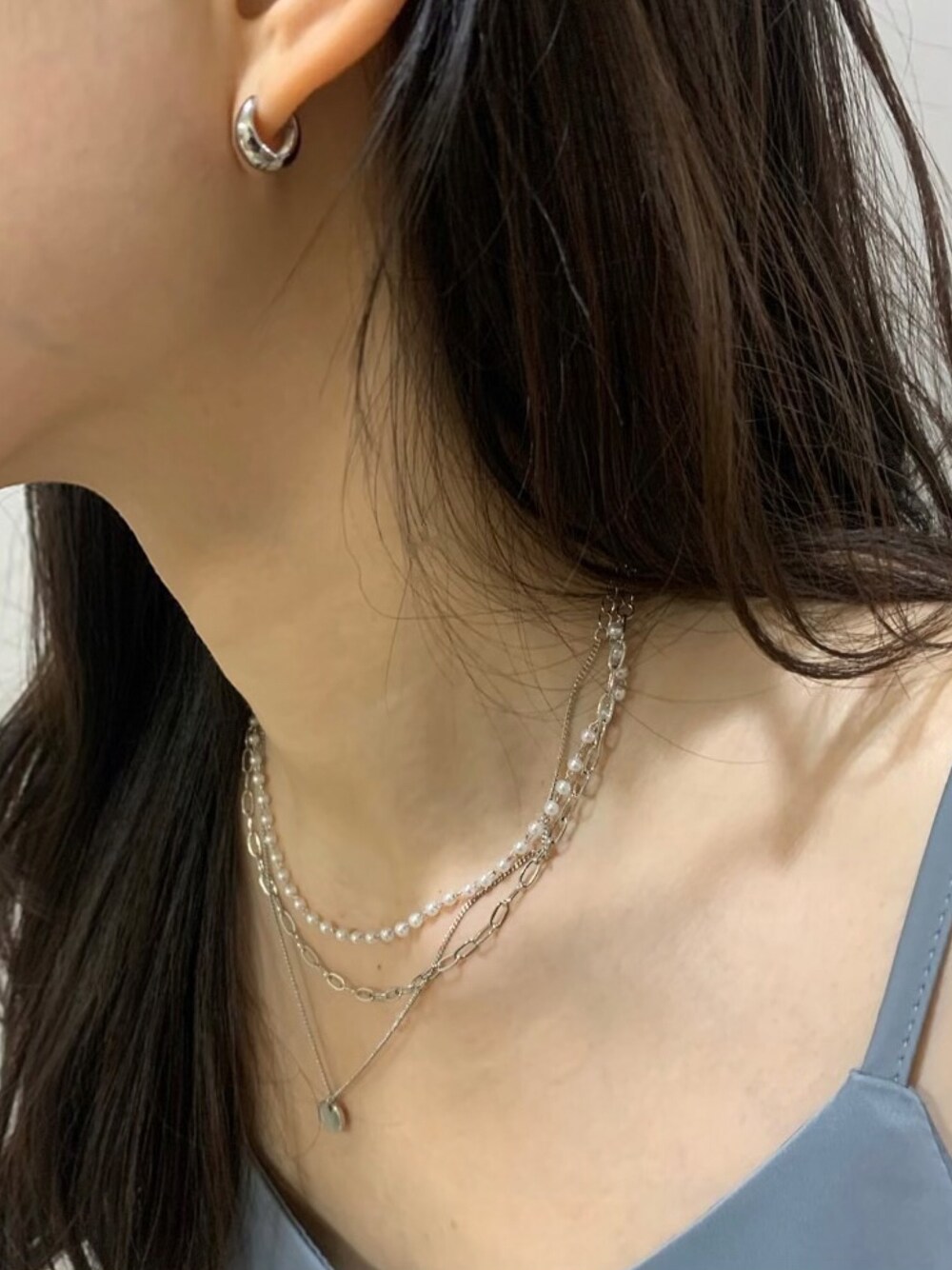 cemonemoのネックレス「コイン パール3連ネックレス / ネックレス 2セット」を使ったコーディネート