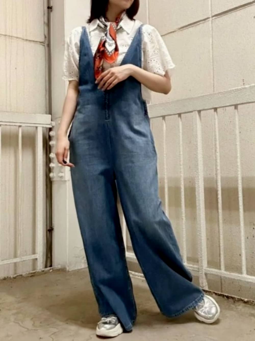 cepo公式(cepo公式)のサロペット/オーバーオール「暑い夏を乗りきる、快適デニム〈接触冷感 / UVカット〉ICE リネンデニムサロペット」を使ったコーディネート