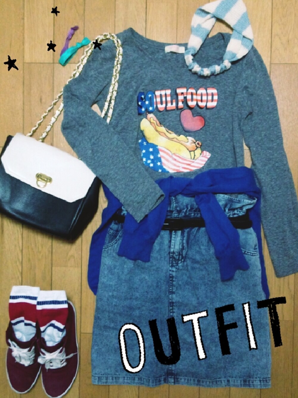 Tシャツ WEGO スカート レトロガール スニーカー H&M プチプラコーデ(´◉◞౪◟ー)~❤