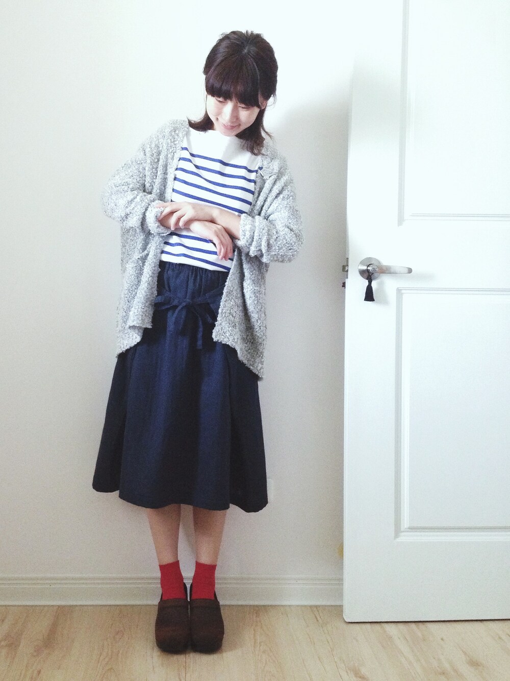 Hello! Spring comes again. 🌸 It's the best season for travel, And I can throw away the big coat.😆😆😆 In my new year vacation, I made this navy skirt.