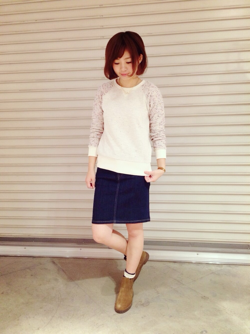 最近寒いですね〜〜 朝方寒くて何回も起きてしまいます。 寝た気にならない(._.)(._.)(._.) 今日は、珍しくガーリーなスタイリングです♡ なんと! こちらのトップスは、新宿店人気No.1なのです!! 薄さも今の時期ぴったりですし、スウェットでも袖の切り替えがガーリーなので、スポーティすぎなくてオススメですよ☻☻