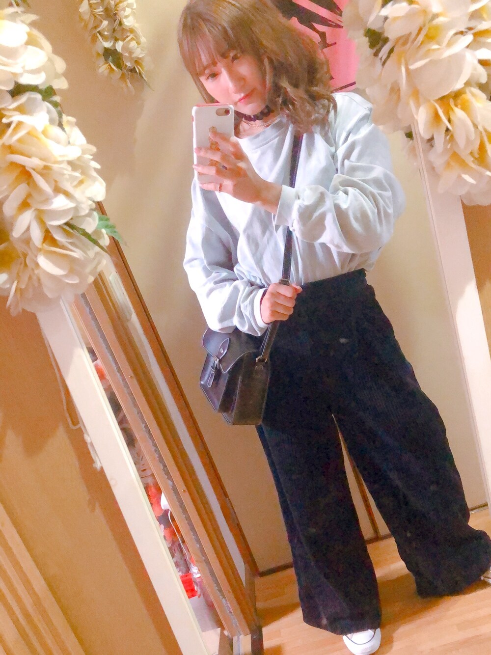 chanmi code🧝♀️ コーデュロイパンツをチョイス🙋♀️ カチューシャは敢えてチョーカーと合わせて 首につけるスタイル💛