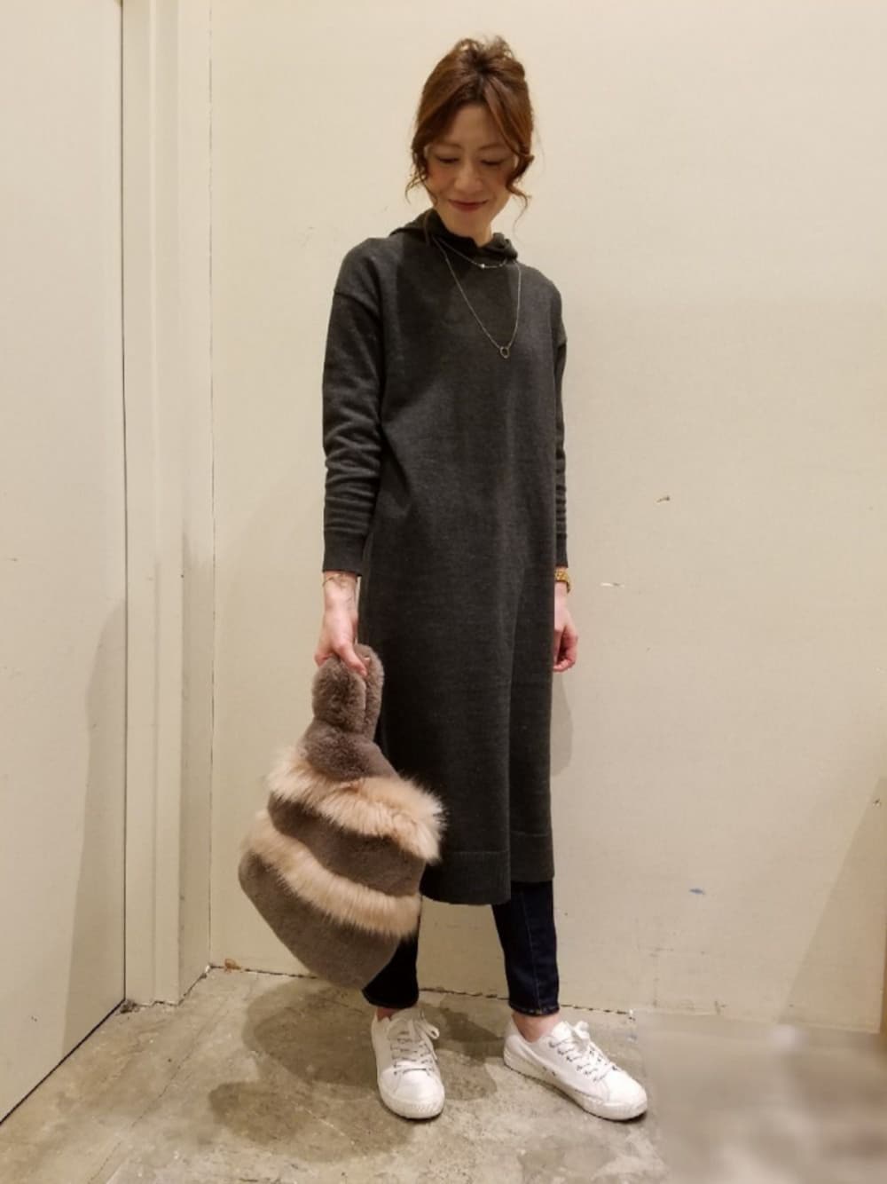 Chika(Green Parks)のワンピース「・ニットパーカーワンピース」を使ったコーディネート