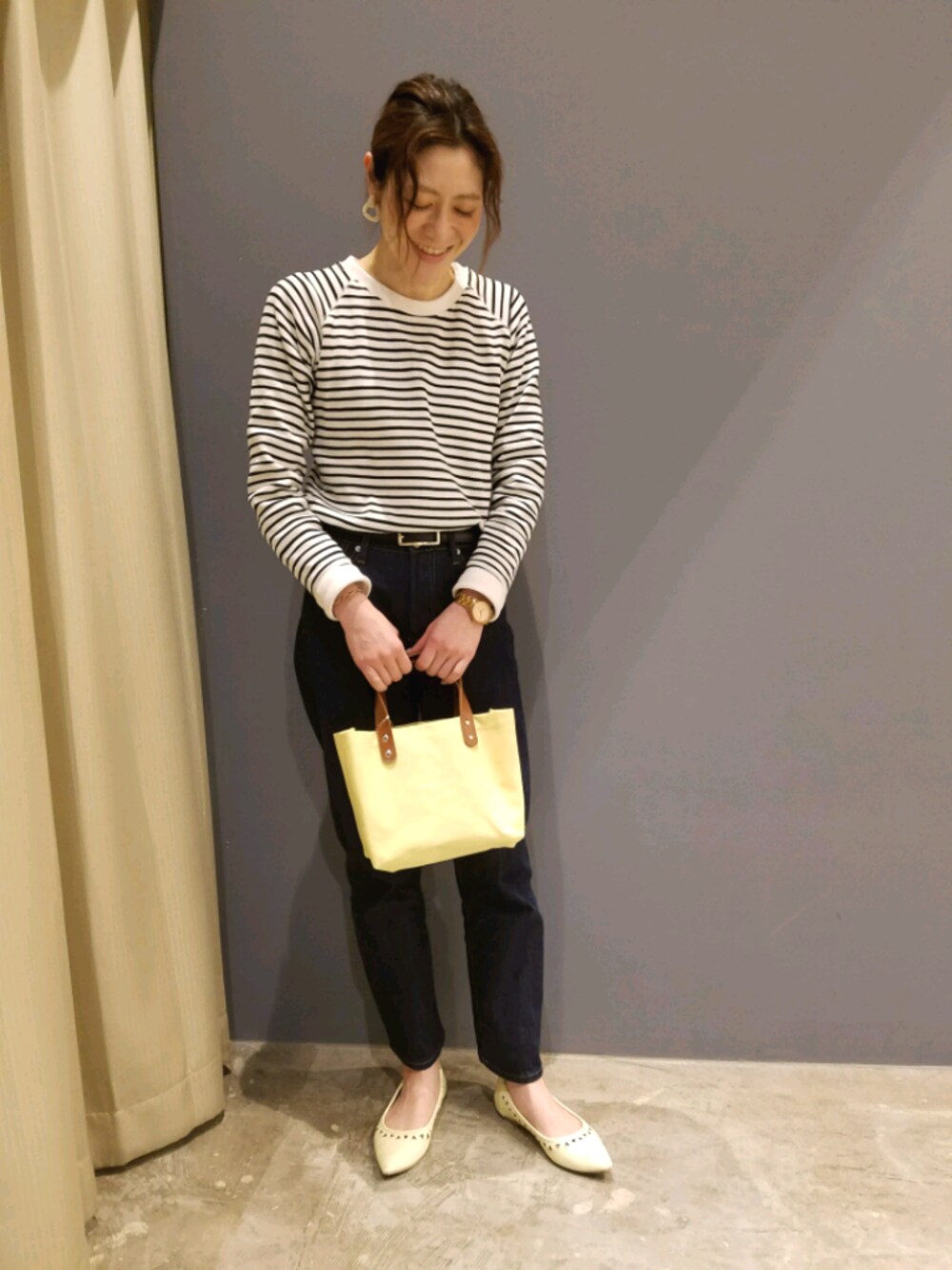 シンプルコーデにイエローをプラス💛 ちょうど今くらいの時期にぴったりで すぐに着られるアイテムです💡 ボーダートップスは ワッフル地の風合いが可愛いですよ😊 そのまま1枚で着たり サロペットと合わせたりなど 着回しもできそうです🙆🙆