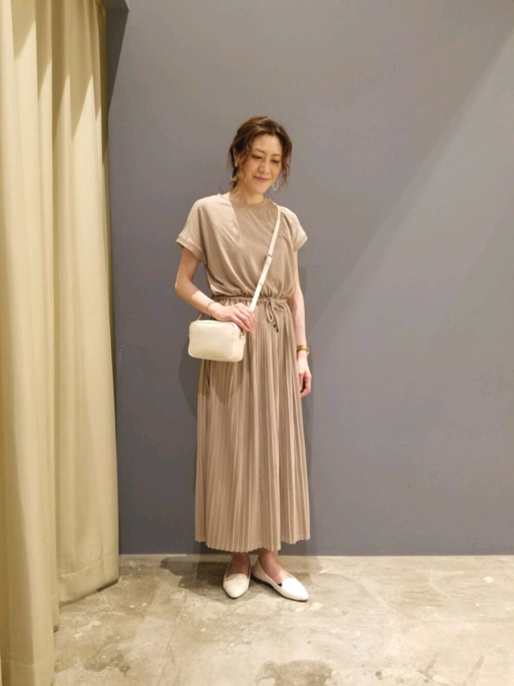 Chika(Green Parks)のワンピース「カットプリーツマキシワンピース」を使ったコーディネート