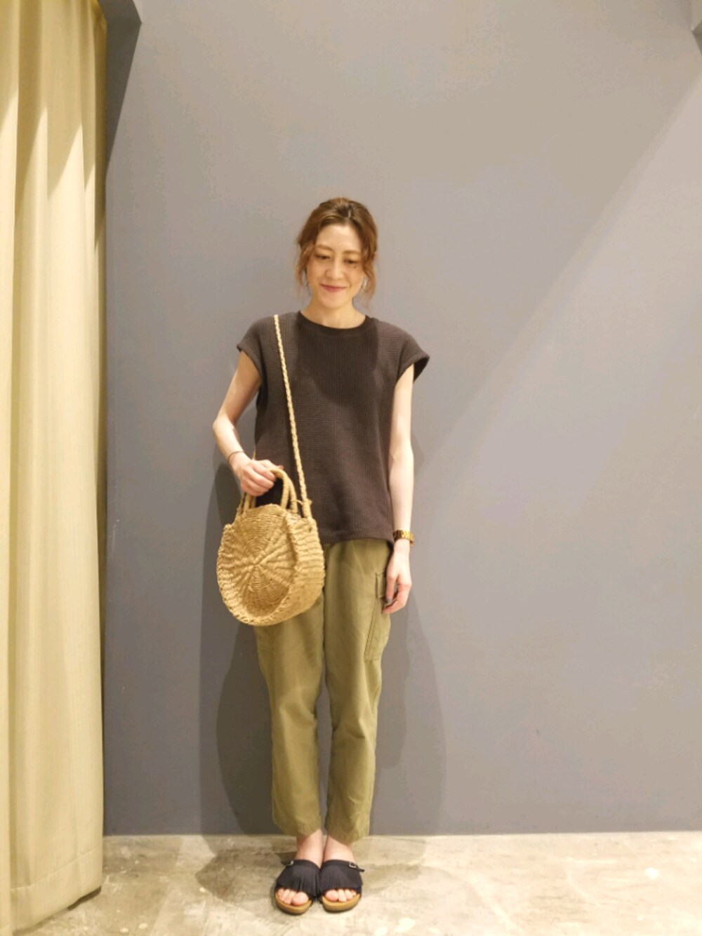 夏カジュアルコーデ🌻 ベーシックなTシャツもいいけど 気分を変えてワッフル生地のトップスを 合わせてみました😊 凹凸のあるワッフルの生地感と かごバッグで 少しナチュラルな雰囲気🌿