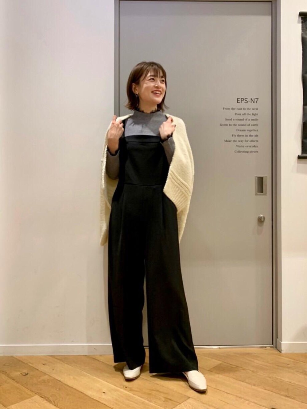 【ビスチェワイドサロペット】 ▷普段のサイズ:M ▷着用サイズ:38 / M ▷サイズ感:ビスチェ部分はジャストサイズですが、ハイゲージのニットは着用頂けます😊 ▷素材感/着心地:サラッとした素材感で着心地も軽いです✨程よい厚みとストレッチ感もあるので膝周りやヒップ周りも安心して着用頂けます♪