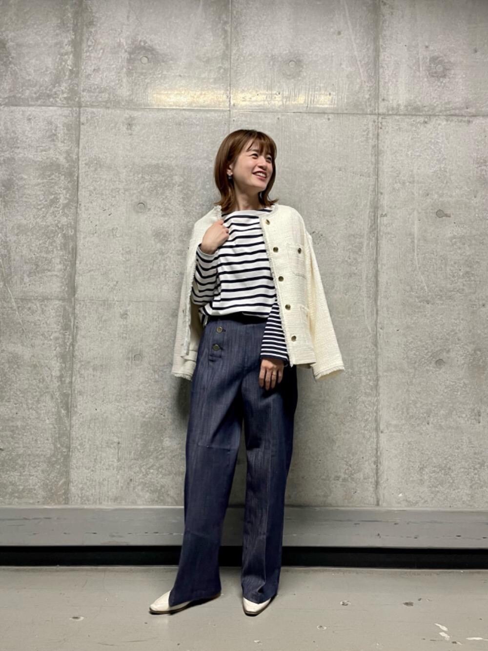 エールデルクールブラン天神地下街店スタッフ(le.coeur blanc)のTシャツ/カットソー「クレイジーパターンボーダーカットソー」を使ったコーディネート