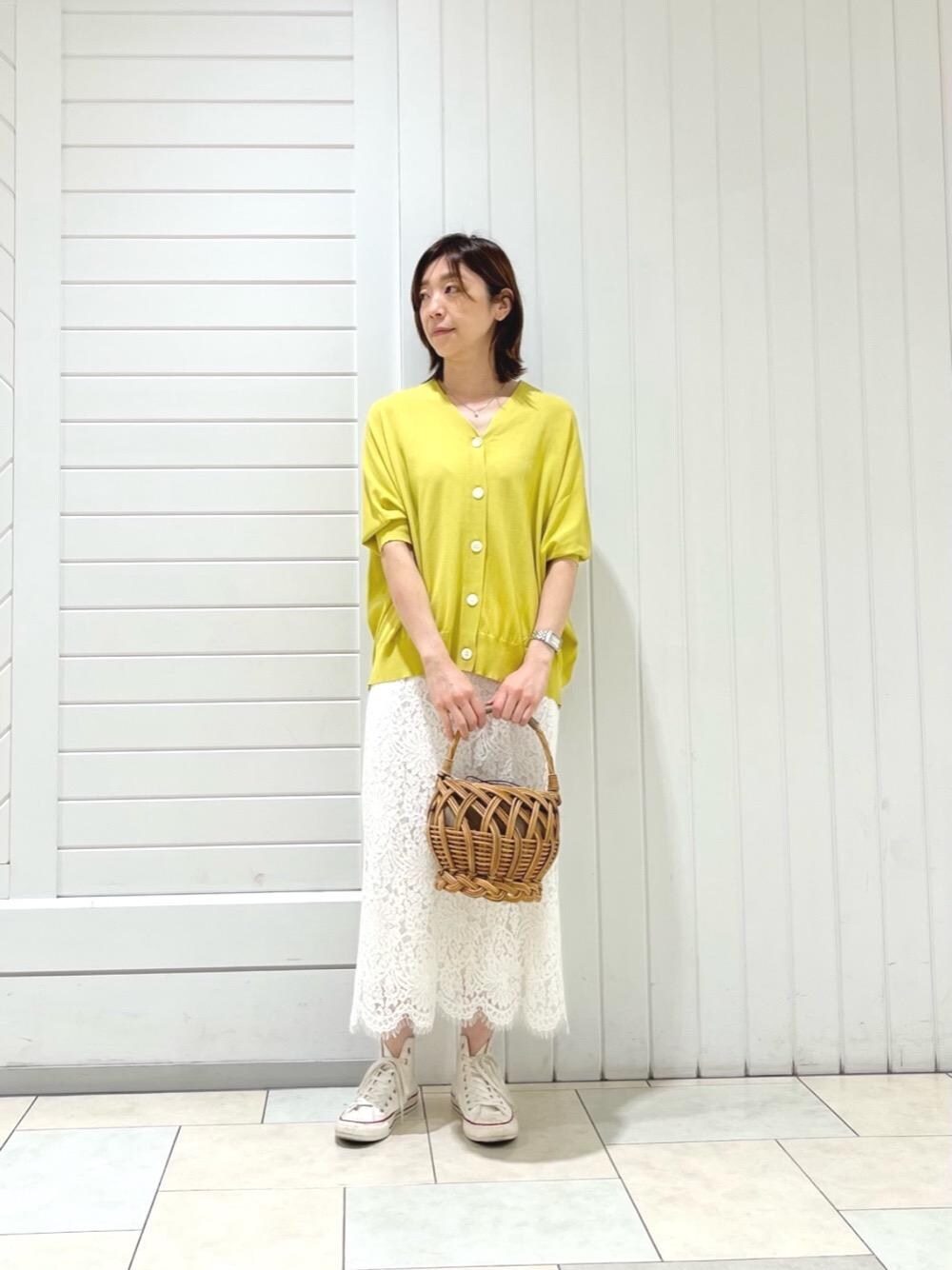 スタッフ身長165センチ/普段着用サイズM〜L 【ドルマンスリーブニットカーデ】着心地の良いサラッとした素材感で夏場も冷房、紫外線対策として使いやすい1枚です。サイズ感もゆったりめで、ヒップも隠れる長さの安心丈。【コードレースストレートスカート】綺麗めで、女性らしさもグッとあがるスカート。ウエスト部分は実はゴムなので見た目よりも楽ちんにはけます。