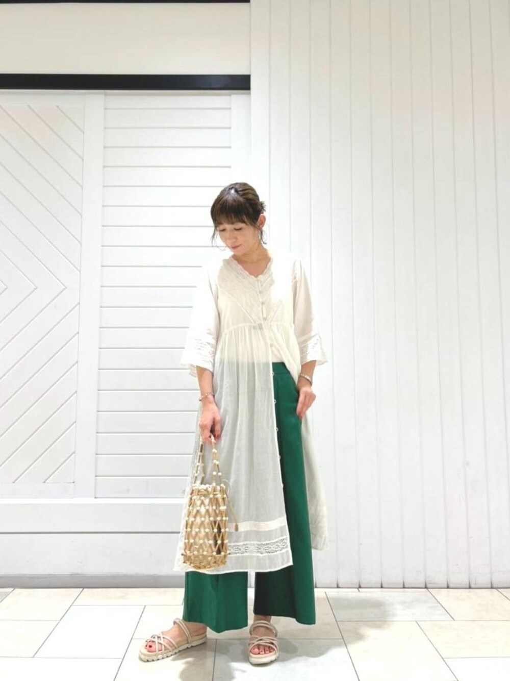 ルクールブラン大船ルミネウイング店スタッフ(le.coeur blanc)のかごバッグ「BAGMATI ウッドビーズバッグ」を使ったコーディネート