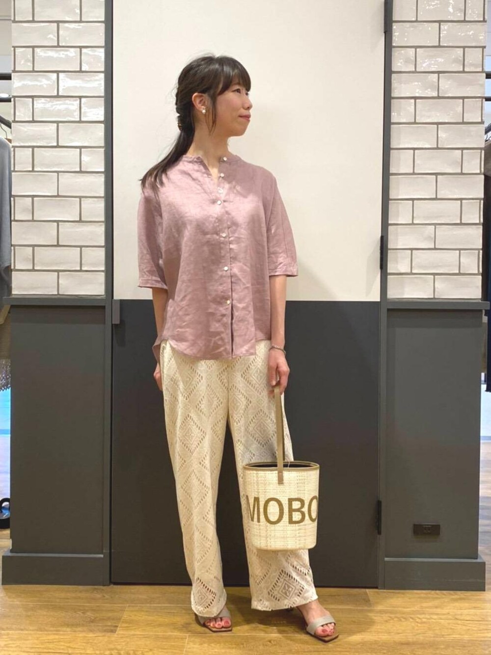 ルクールブラン金沢リント百番街店スタッフ(le.coeur blanc)のハンドバッグ「ロゴプリントポールバッグ」を使ったコーディネート