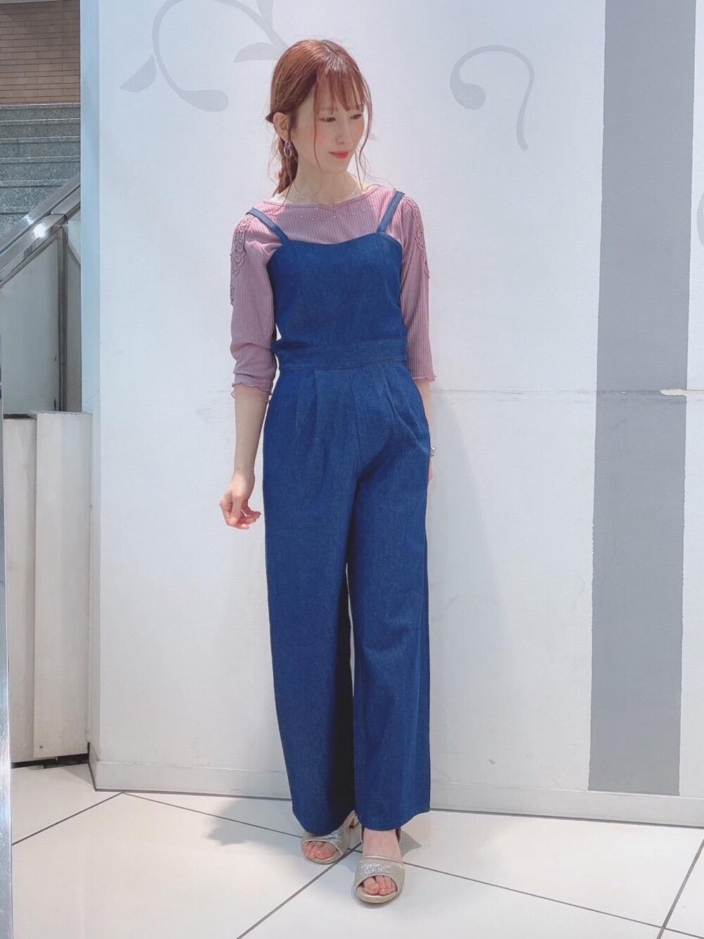 身長:155cm / 普段サイズ:M / 肩のデザインが可愛いトップスが入荷しました♪♪デコルテを綺麗に見せてくれるネックデザインとさりげないビジューがポイント♡サロペットと合わせてとカジュアルなコーデに☆