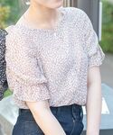 フラワーブラウスとカジュアルなゴムパンツを合わせてオトナ可愛く🧑ストレッチの効いたかなり歩きやすいパンツになっております!