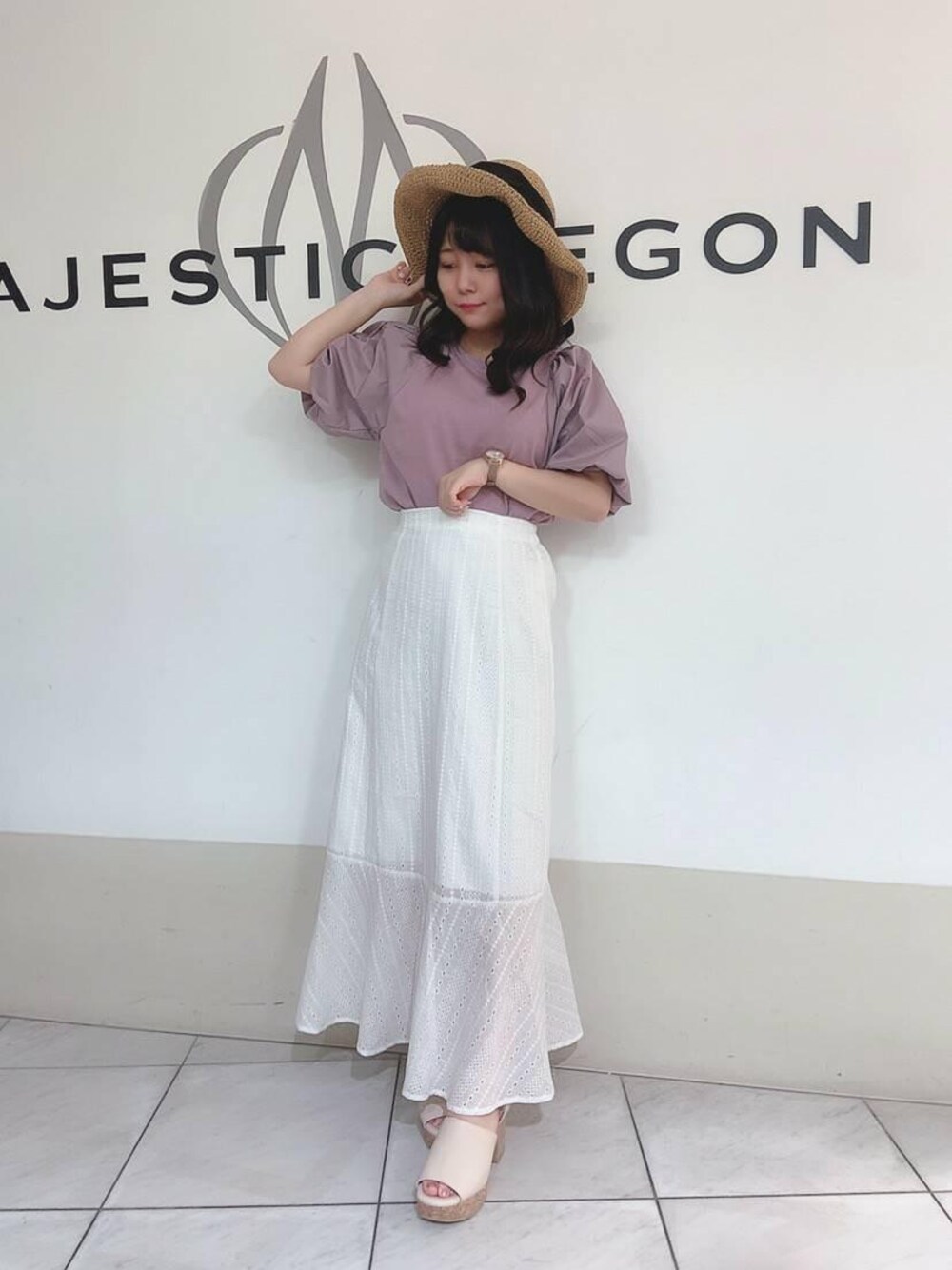 バルーンスリーブのトップスとコットさンレースを合わせてシンプル可愛いコーデに🍒