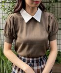 ガーリーモテコーデ🧸ブラウン襟付きニットにマーメイドスカートを合わせて甘めな可愛らしい印象に!💓