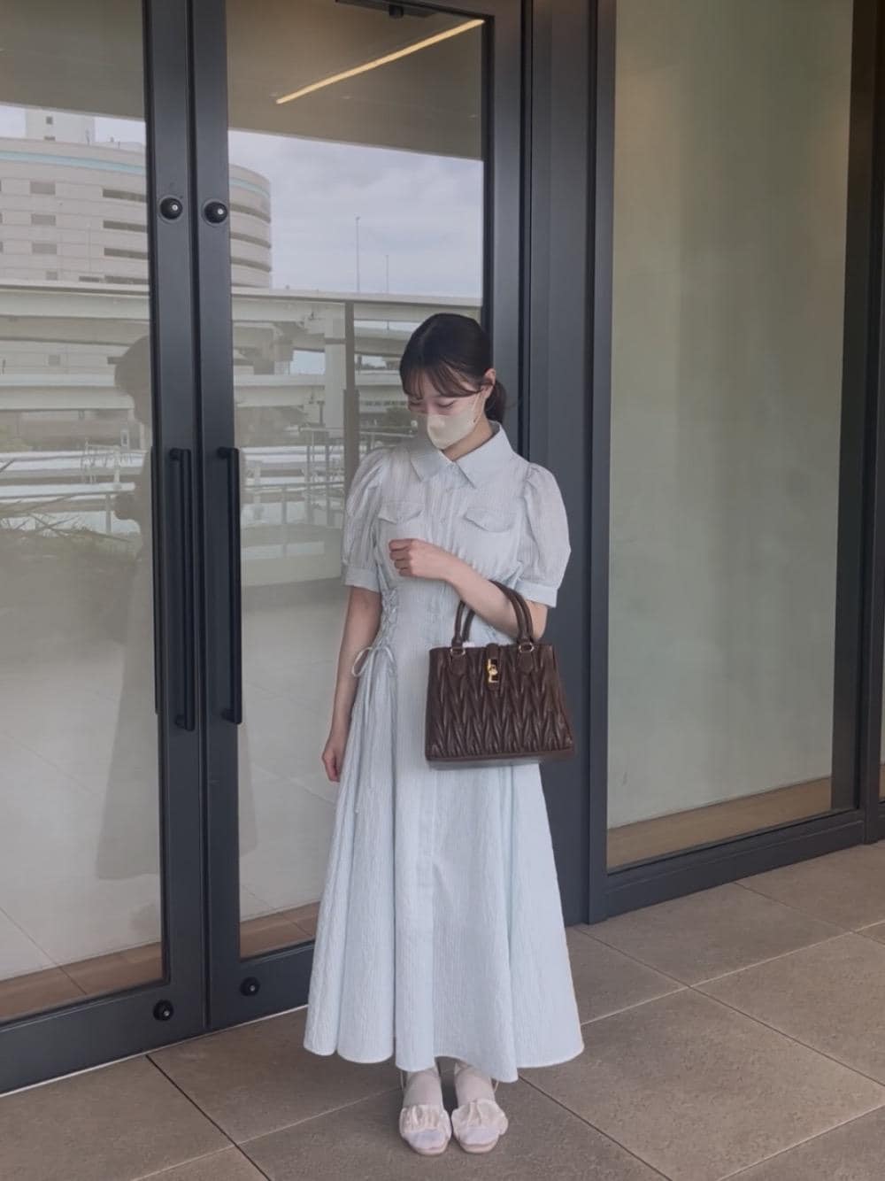 大人気の細見えシャツワンピースはサイドのレースアップでウエスト調節して頂けます✨