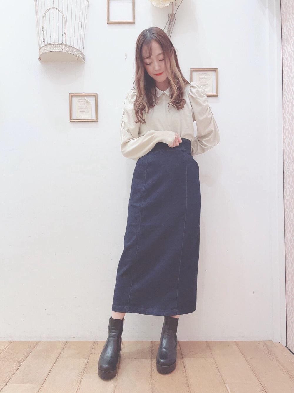 スタッフ身長→153cm🐱 着用サイズ→ブーツS その他Mサイズ🐱 襟付きニットとデニムで甘すぎないコーデになります🎶