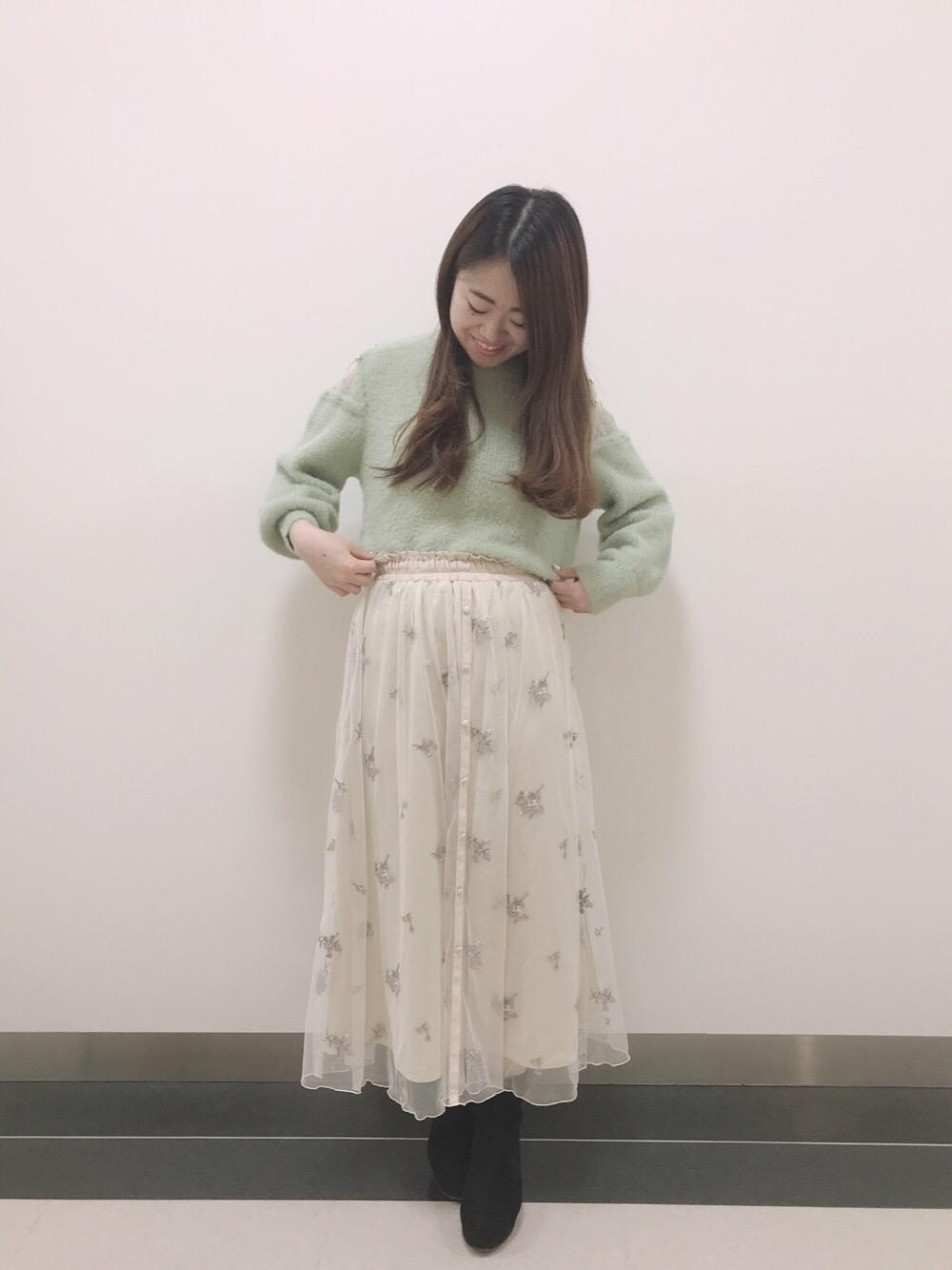 新作コーデのご紹介😊💗シャギーニットはカラー8色展開なのでお色味が選び可愛く着こなせます✨ チュールスカートは刺繍とチュールが綺麗なので大人可愛くなります!!