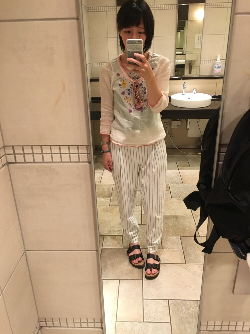 ホワイトコーデにポイントカラーで 緑差し色に入れました(´∇`)